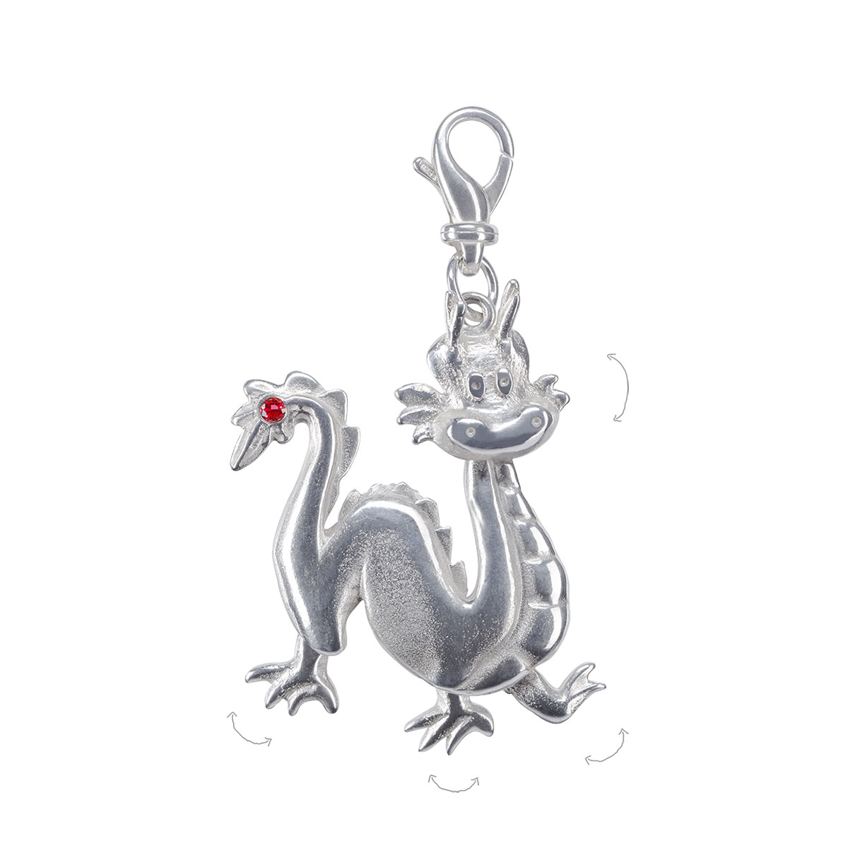 ~ .935 tarnish resistant silver ~ 2.5mm AAA grade non-conflict ruby ~ Handcrafted in New York ~ Moving parts: head, feet ~ Height 4.9cm, Width 4.5cm ~ Height with clasp 6.5cm ~ Clasp .925 silver from Italy ~ Years: 1928, 1940, 1952, 1964, 1976, 1988, 2000, 2012, 2024, 2036